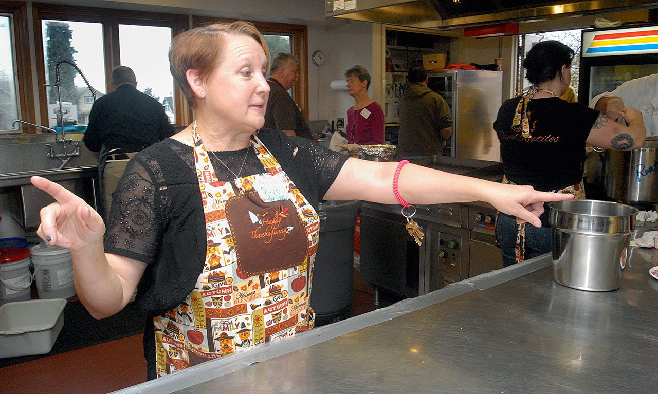 PORT ANGELES — Cheri Knotts stood in line for 40 minutes before reaching the food at the record-breaking Thanksgiving dinner in the gym at Queen of Angels Catholic Church.