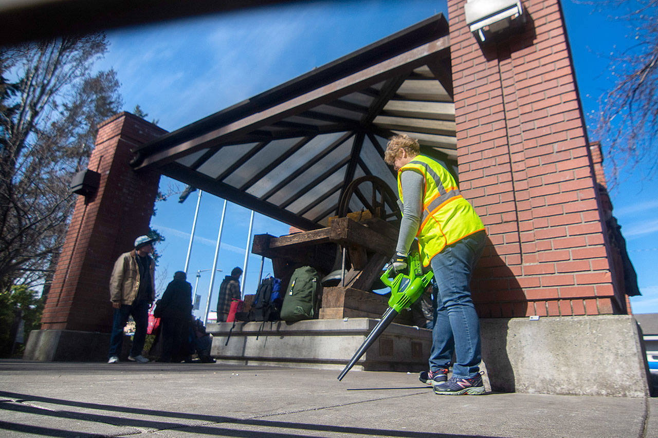 The park has become a popular spot for people who are homeless or who have no other place to be during the day. People there Monday said the shelter over the bell and the benches makes it one of the few good places to go.