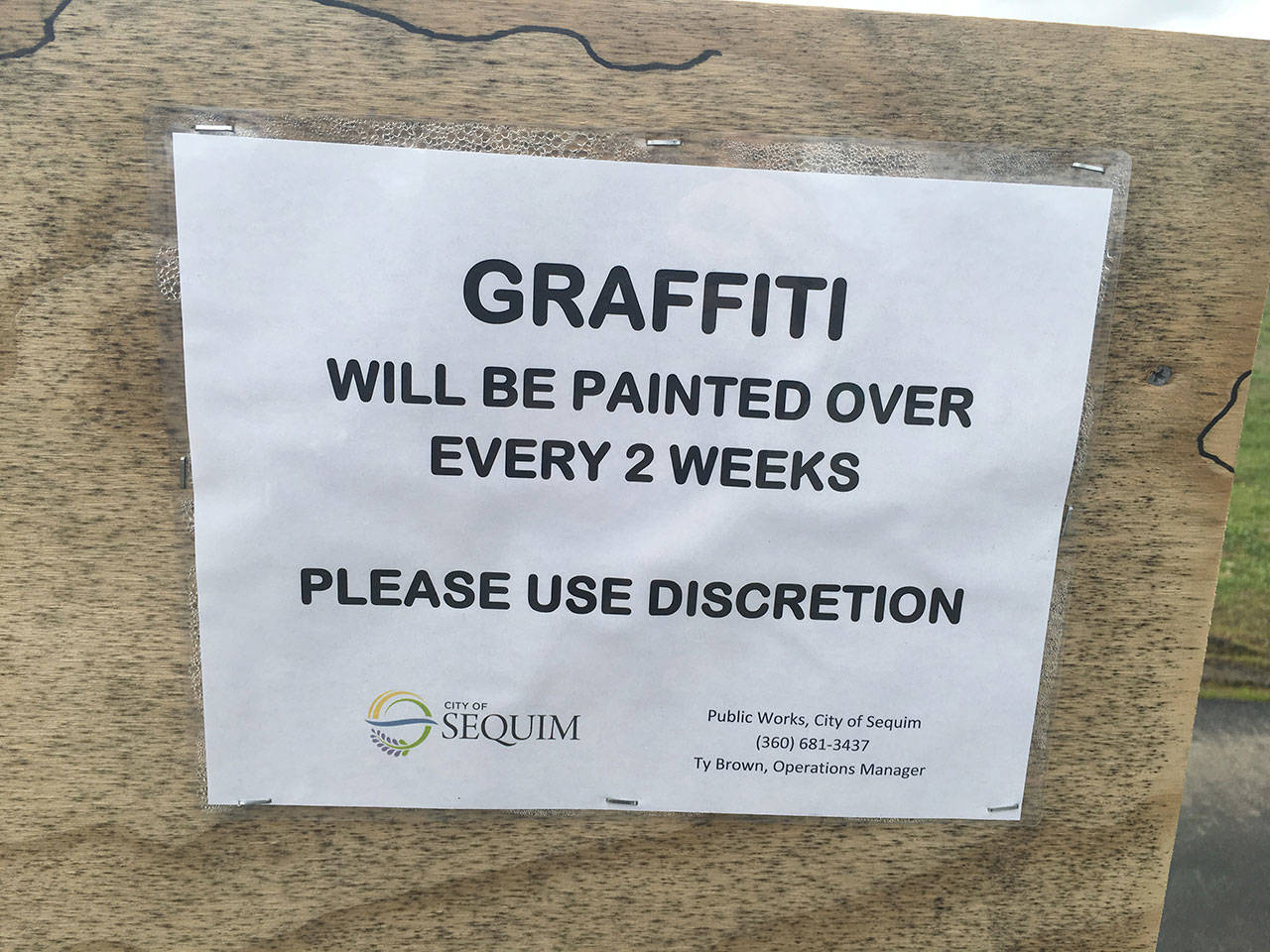 Ty Brown, operations manager for Sequim Public Works, said the graffiti board went up in late 2012 as a way to divert graffiti from the skate park and he says it’s been an effective tool.