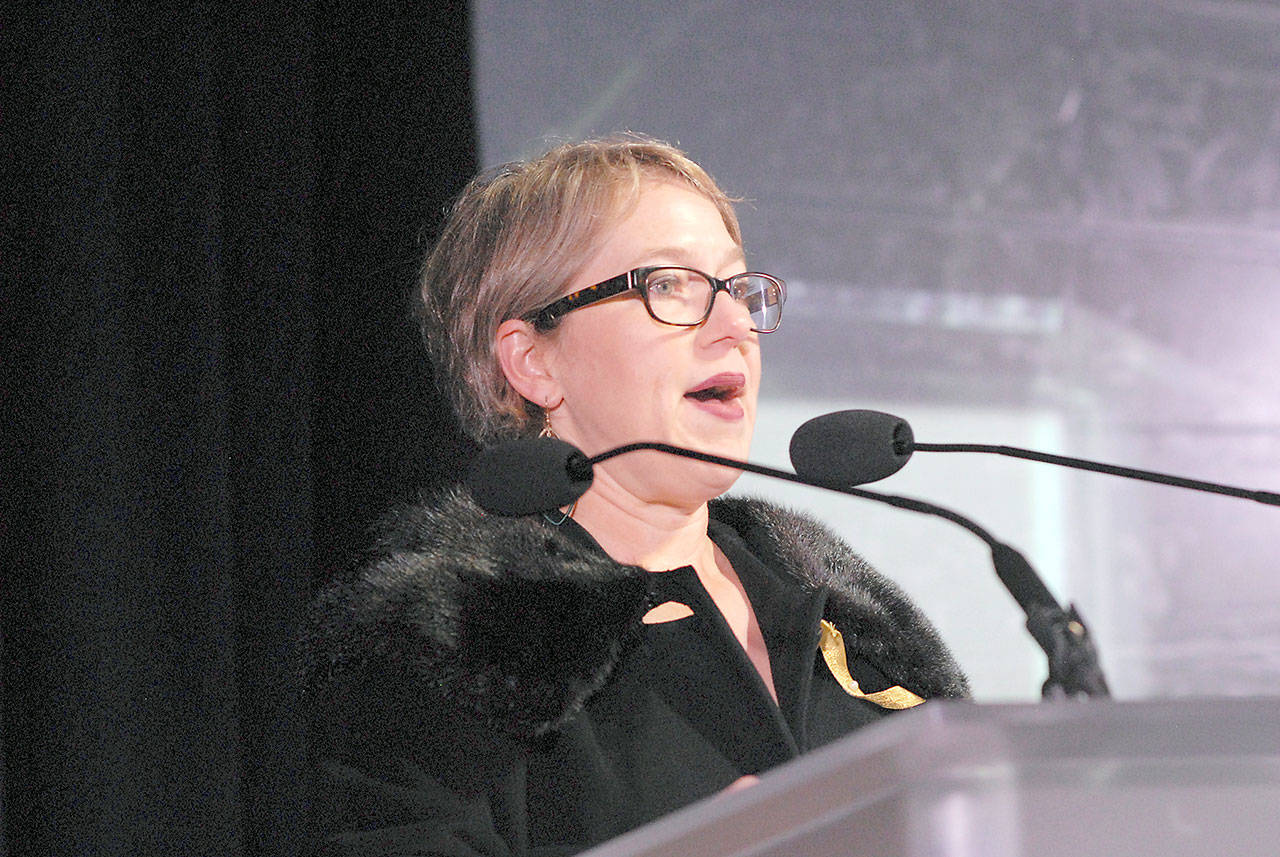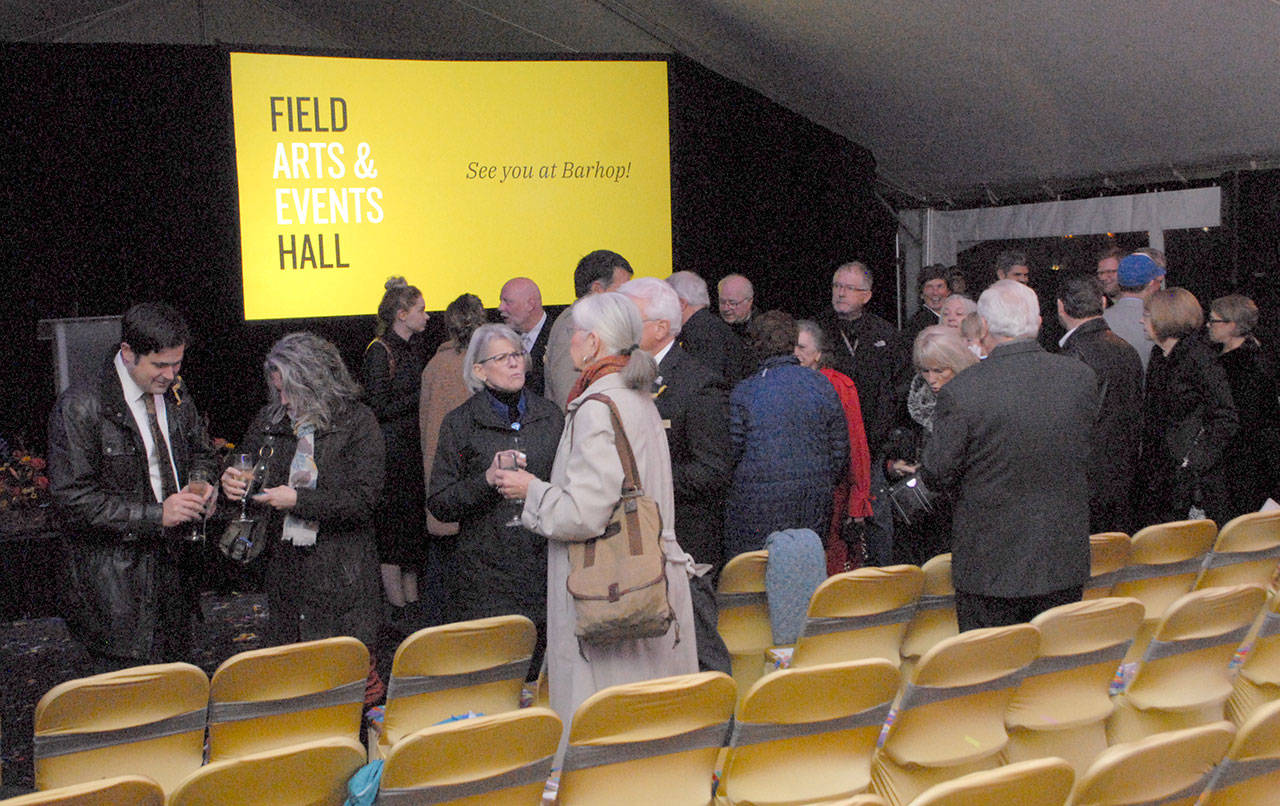 The evening’s invitation-only ceremony at the center’s site at Front and Oak streets on the Port Angeles waterfront marked the occasion under a tent filled with officials, organizers, donors and friends of the performing arts center.