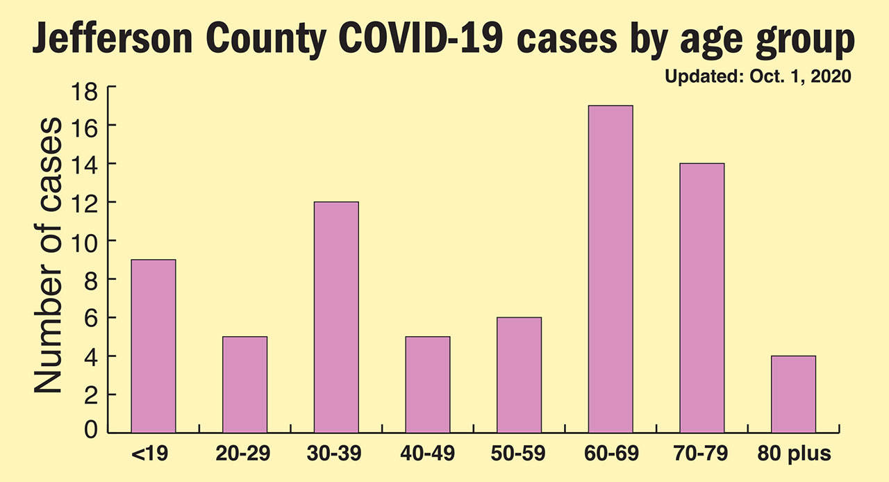 Jefferson County did not report any new positive rest results Saturday. Jefferson has 72 total cases since March with two active cases. In fact, Jefferson County has had only two cases since late August. The infection rate is officially 0 per 100,000 though that number will likely be updated Monday with one new case reported last week in that county.