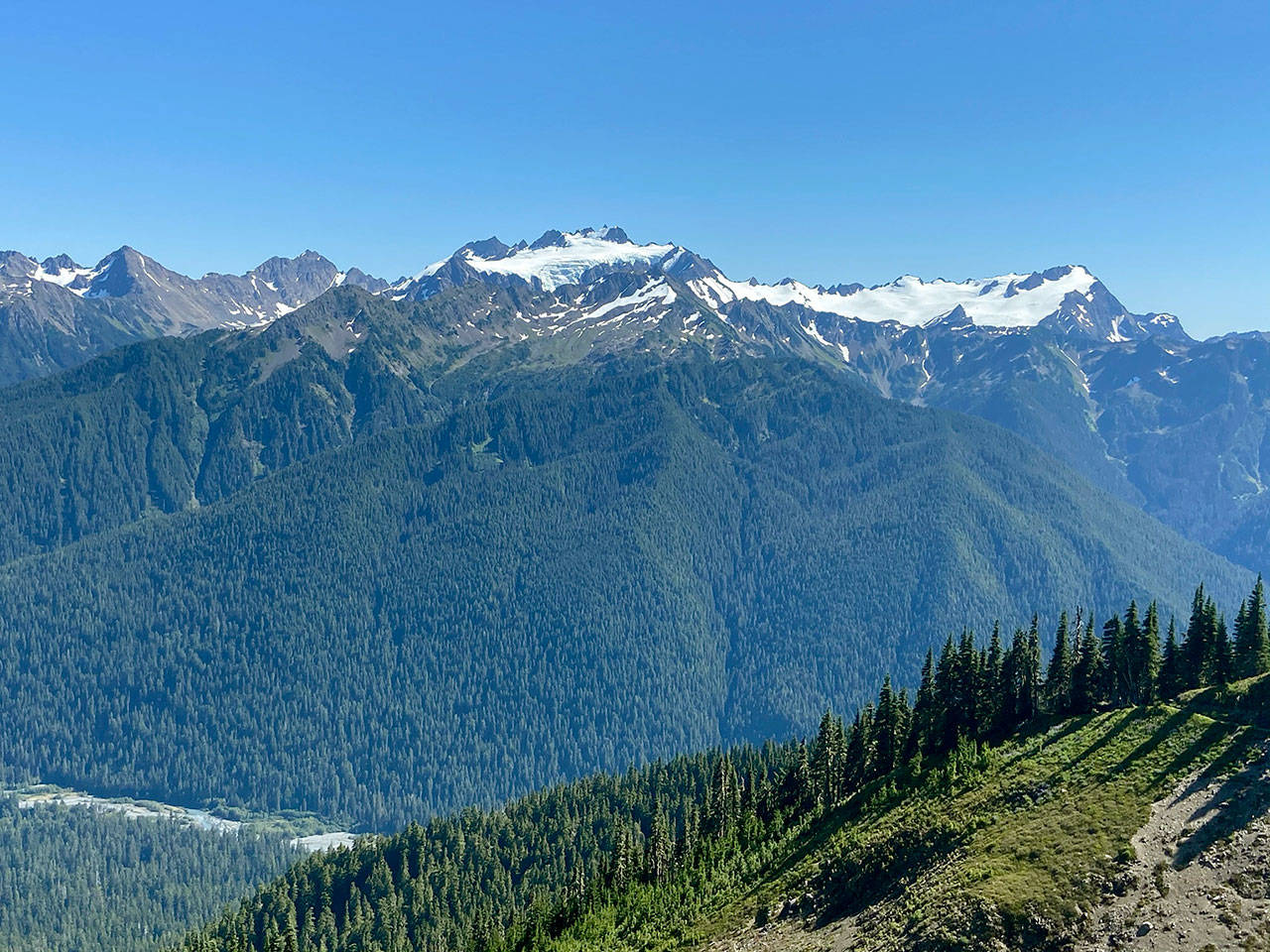 The trail climbs 3.3 miles from Deer Lake to High Divide and the first views of the Hoh and Bogachiel basins of the West End.