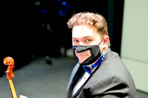 The morning after, Getzin made two public appearances. A violinist since he was 4, he performed in the Port Angeles Symphony Orchestra’s morning and evening concerts of Tchaikovsky, Francaix and Mozart at the Port Angeles High School Performing Arts Center, his locks barely grazing his collar.