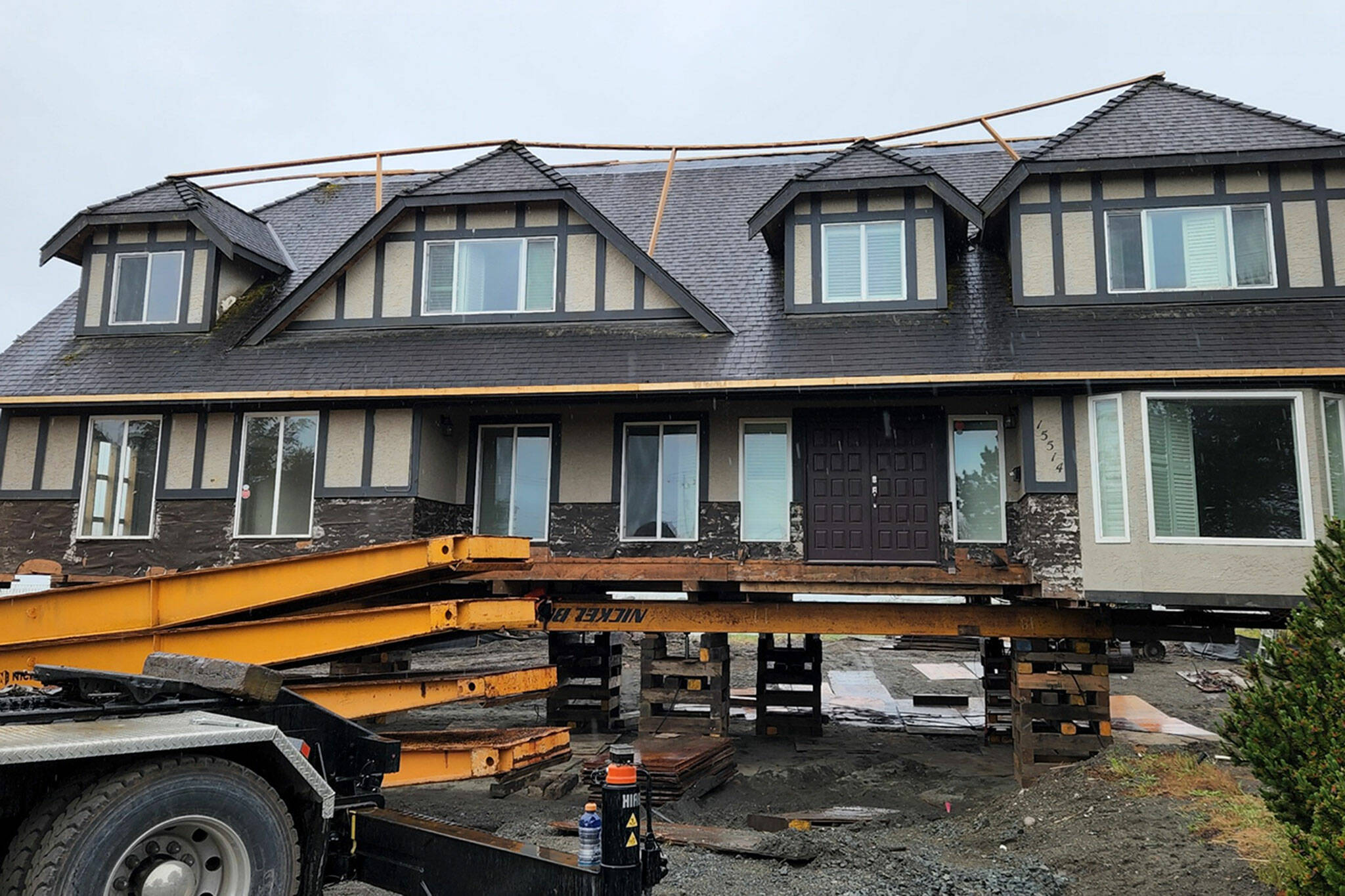 To make possible the move from British Columbia to Clallam County, crews lifted it off its foundation, placed it on a truck, brought it to a barge, shipped it to Dungeness and placed the house at its new home along the beach.