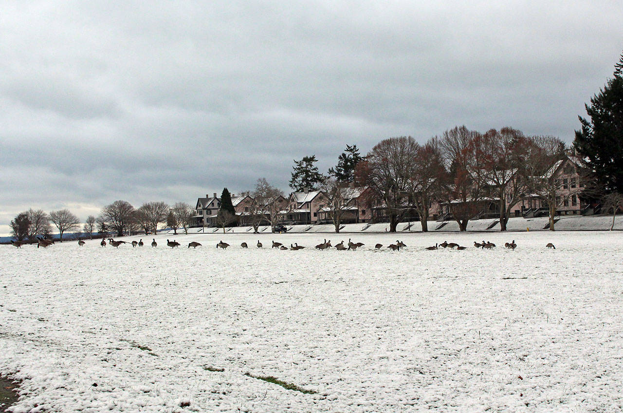 National Weather Service Meteorologist Jeff Michalski said an average 4-inch snowfall blanketed the Port Angeles area by Monday, an accumulation recorded on East Lauridsen Boulevard, and piled higher, to 4.8 inches, near Black Diamond Community Center.