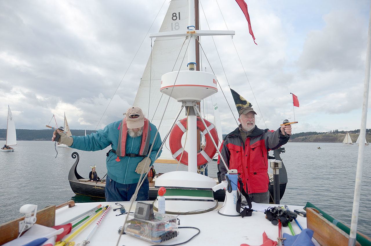 The course was set up by 11 a.m., with bright yellow buoys set up near the crane on Indian Island, in the middle of Port Townsend Bay between the ferry dock and Marrowstone Island and just off from the Boat Haven Marina entrance. The starting line was in the middle of the Boat Haven and Indian Island buoys — but a last-minute wind change meant the starting line had to be rotated slightly.