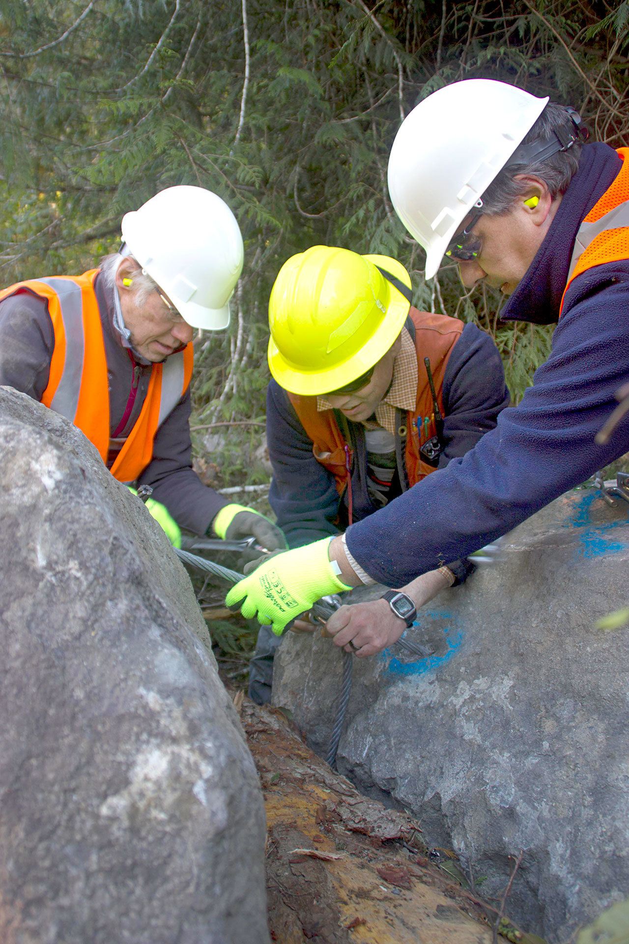 By building structures out of logs with rootwads and using rocks to anchor them, they mimicked how a river would naturally create jams with logs and rocks that tumble downstream during high flows.