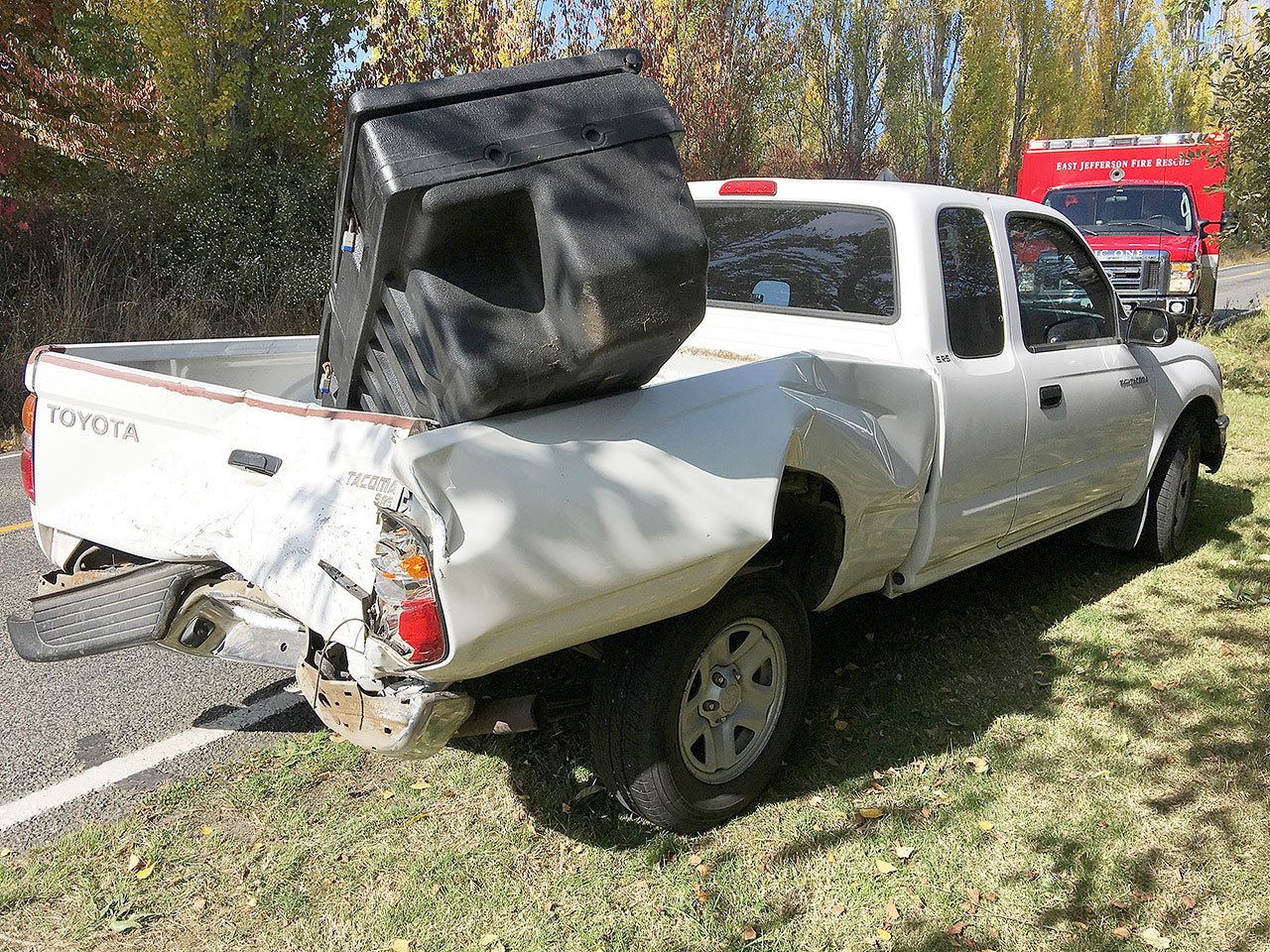 At the scene in the 3600 block of South Discovery Road was a white Toyota Tacoma with significant rear-end damage, the fire department said, adding that the driver was taken to Jefferson Healthcare.