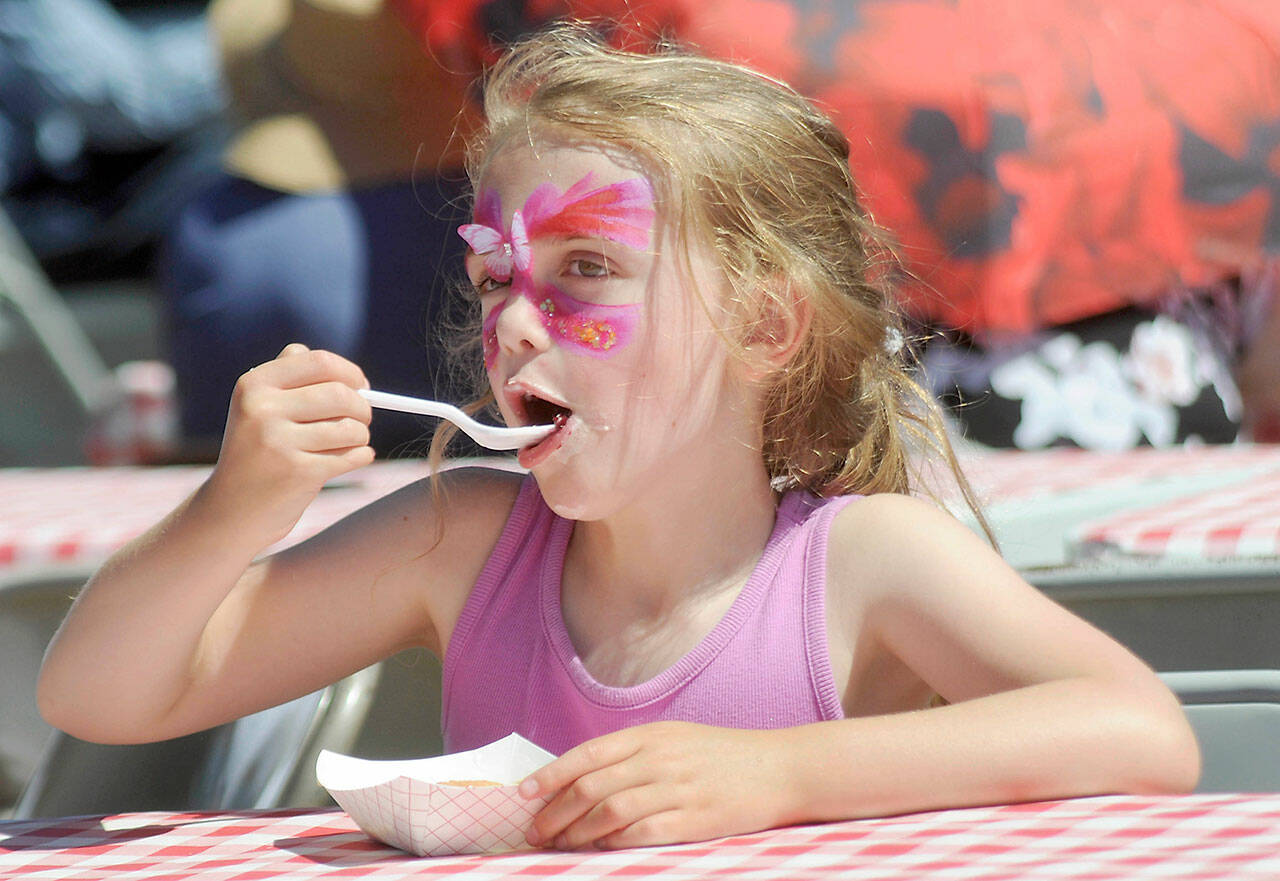 Gloria Fitzpatrick, 6, of Port Angeles enjoys a slice of blackberry pie a la mode during Saturday’s Joyce Daze celebration. (Keith Thorpe/Peninsula Daily News)