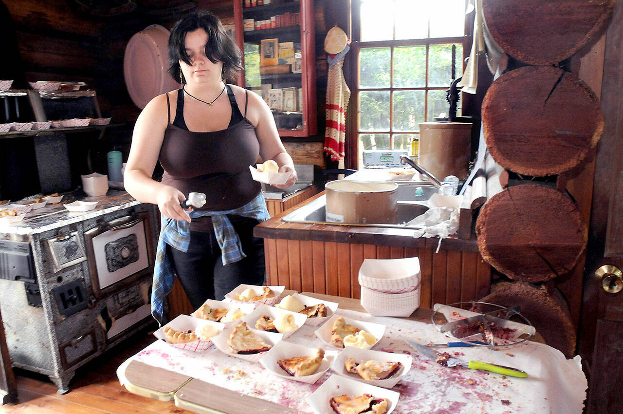 Pie volunteer Allison Stephens of Ocean Park dishes out ice cream for pie a la mode during Saturday’s Joyce Daze Wild Blackberry Festival. (Keith Thorpe/Peninsula Daily News)