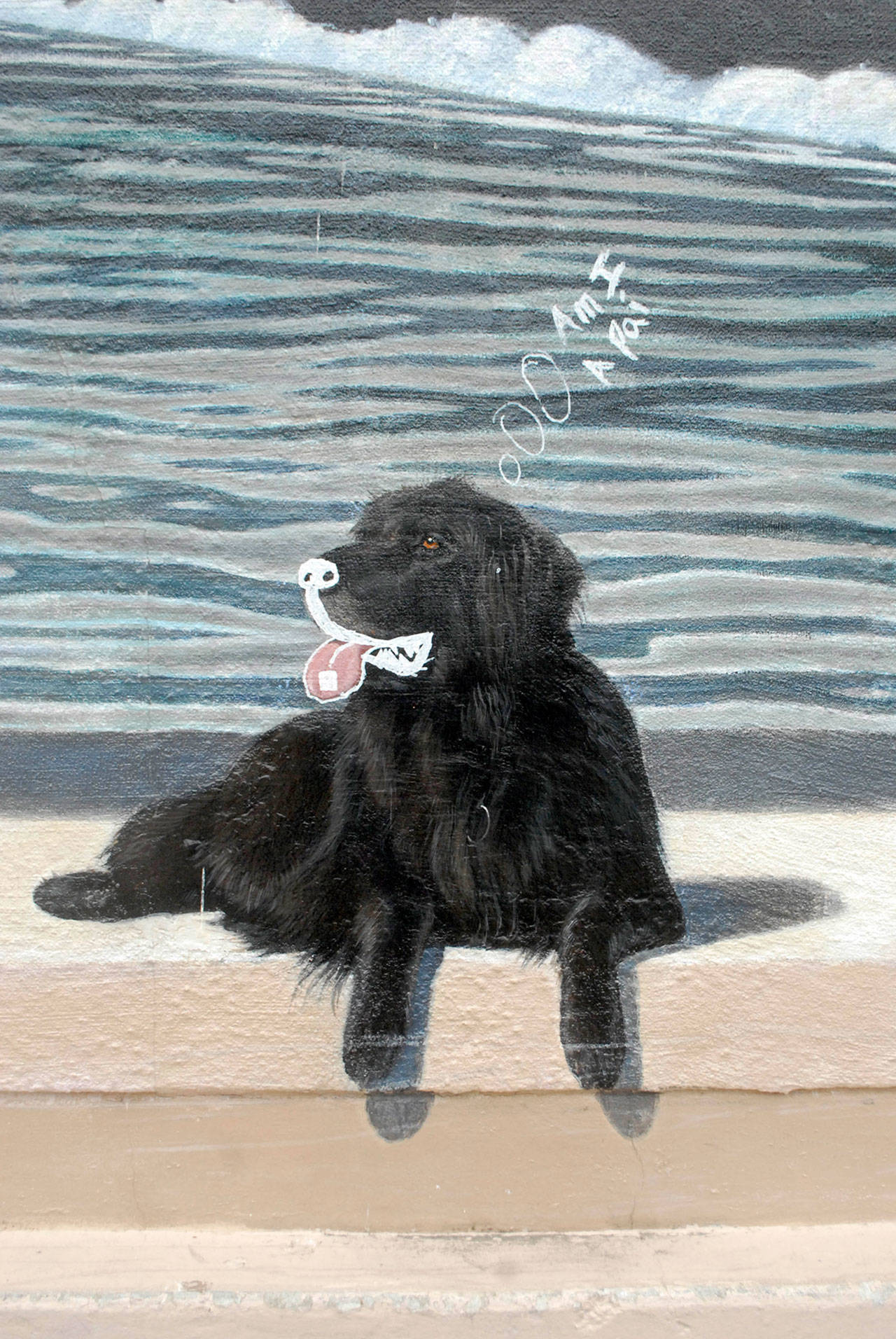 The three-dimensional dog in the mural was vandalized earlier this month.