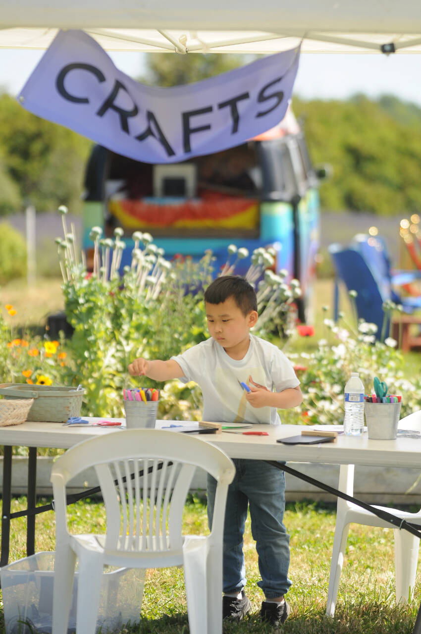Stephen Luo, 5-and-a-half, of Seattle, enjoys some crafting at Jardin du Soliel Lavender Farm & Gift Shop on July 15. Luo’s family made the trek from Seattle to the Olympic Peninsula to enjoy several spots at Olympic National Park and serendipitously happened upon Sequim’s Lavender Weekend. (Michael Dashiell/Olympic Peninsula News Group)