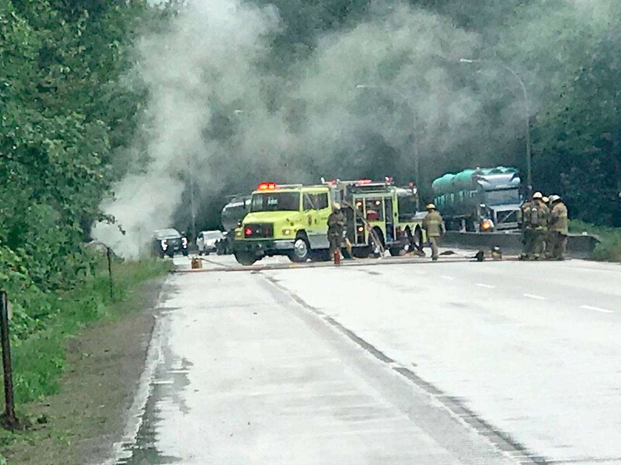 He described thick smoke and said it was difficult to see into the vehicle. Not long after they helped her out of the vehicle, the car became fully engulfed in flames. Firefighters blocked the highway upon arrival, he said.
