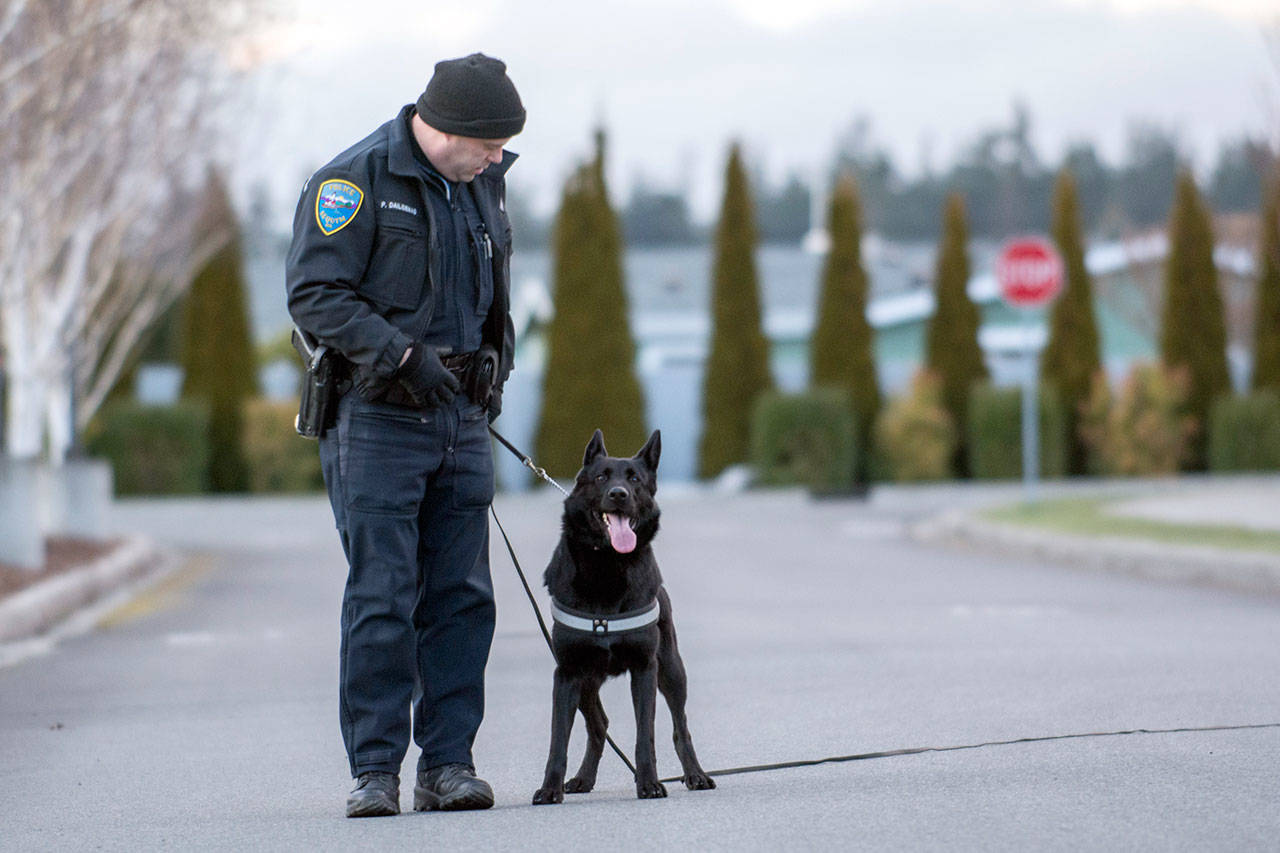Miller has worked with dogs much of his life, starting with hunting dogs when he was 11 years old and moving on to police dogs in high school. He’s been a canine handler for the Port Angeles Police Department for 26 years, he said.