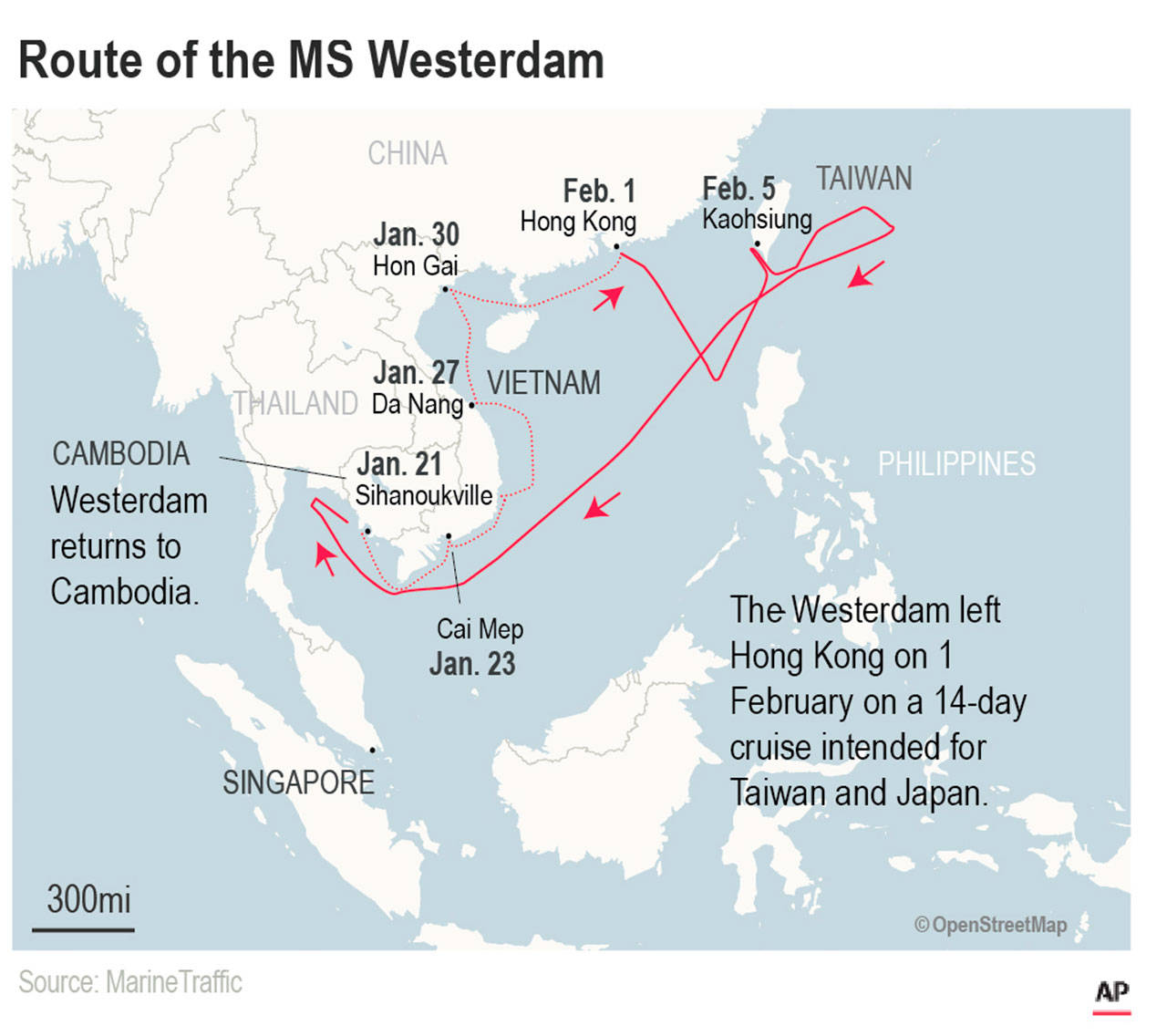 Their ship, the Holland America Westerdam, has been refused entry to five ports because of concerns about the coronavirus — even though no onboard cases have been confirmed.