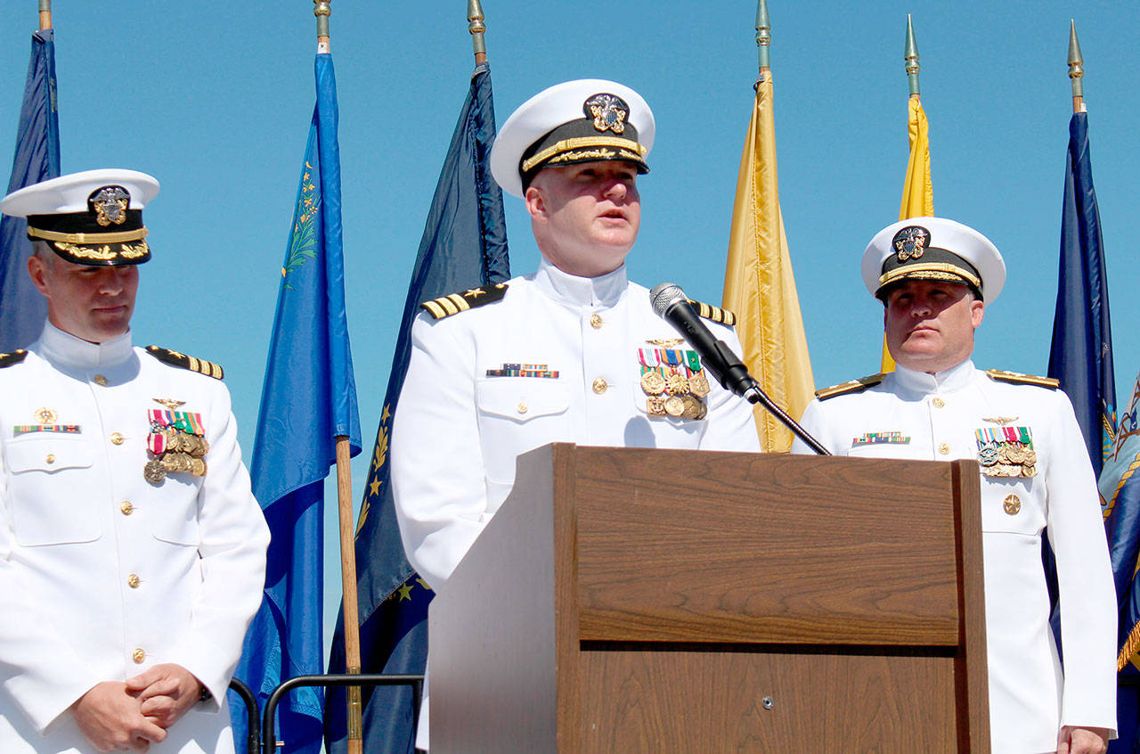 About 100 Navy personnel, family and community members attended the outdoor ceremony Thursday morning at the naval installation.