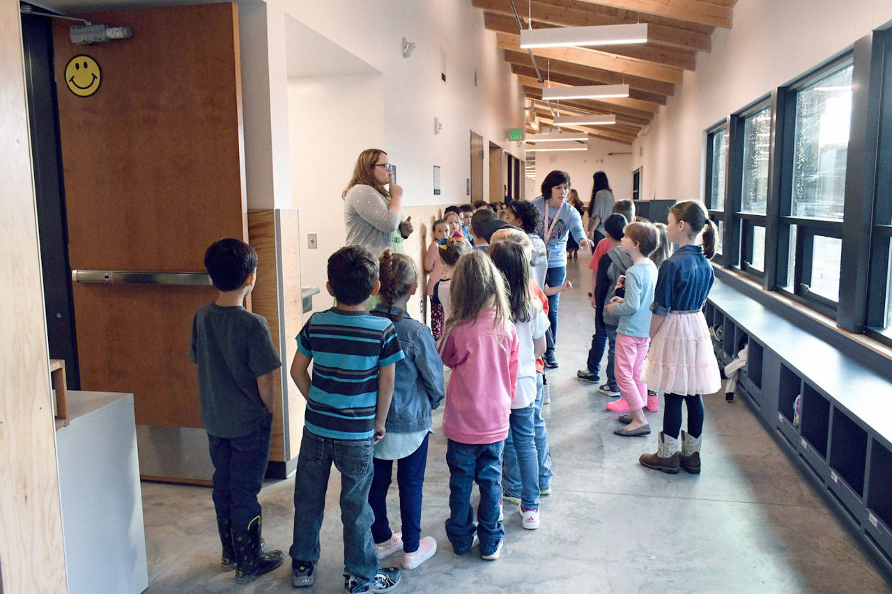 PORT TOWNSEND — As the sun broke through a cloudy sky on Tuesday, students and their parents arrived at the new Salish Coast Elementary School on Grant Street.