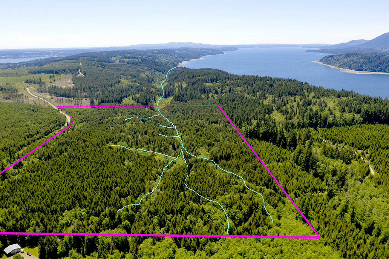 Discovery Creek flows from the purchased property about 2 miles to Dabob Bay.