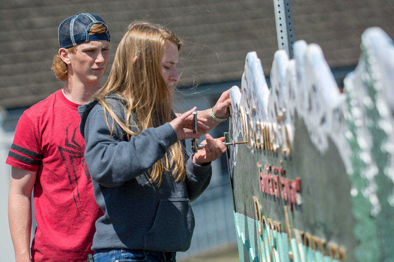 PORT ANGELES — Woodworking students at Port Angeles High School are preparing to unveil the new “Welcome to Port Angeles” sign they created for the city during a ceremony and ribbon-cutting today.