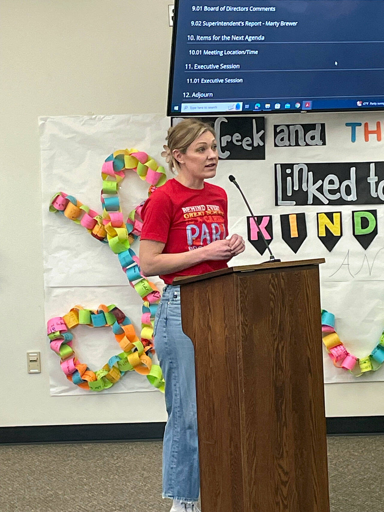 Teacher Mary Krzysiak invited the board to visit her Dry Creek Elementary School classroom so they could observe first-hand the breadth of tasks paraeducators have to do and the irreplaceable assistance they provide.