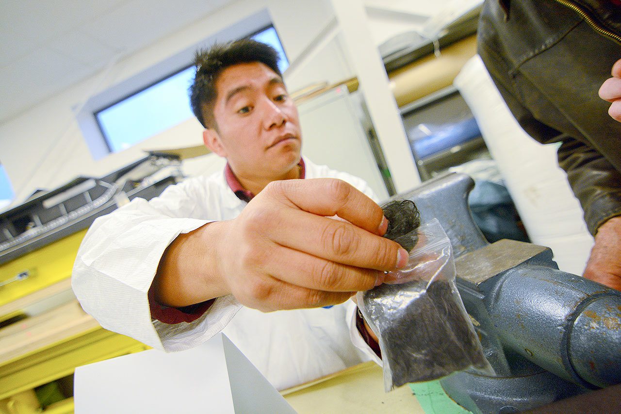 Guests toured the college’s 5,000-square-foot section of the Composite Recycling Technology Center (CRTC) at 2220 W. 18th St. in Port Angeles on Tuesday afternoon, getting close looks at examples of student work and the machines they use.