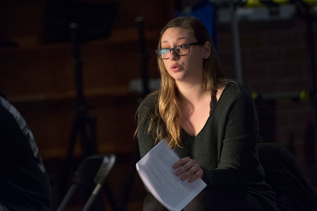 As students rehearsed “OPioids” on Wednesday, which is modeled after a 12-step meeting, recovering heroin addict Leif Ellis was there to provide tips to make the play as realistic possible.