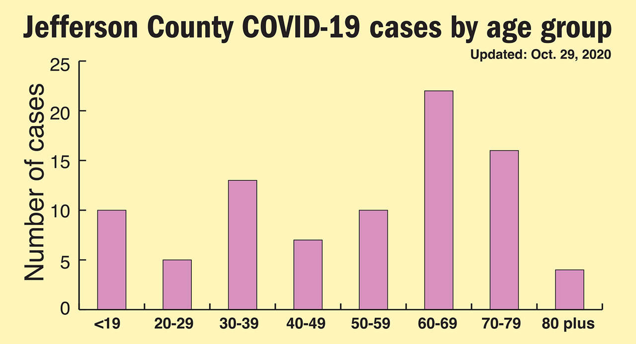 Jefferson has 88 total cases since March and 14 active cases. That county’s infection rate was last reported at 21.94 per 100,000 over two weeks. That number will be updated Monday, said Jefferson County Health Officer Dr. Tom Locke.
