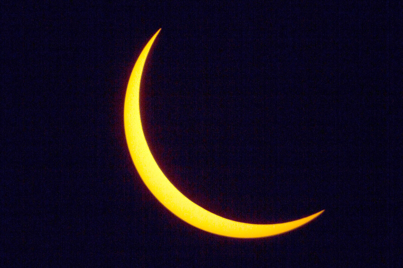 On the screen set up in front of the room, the moon’s arc inched across the sun’s face.