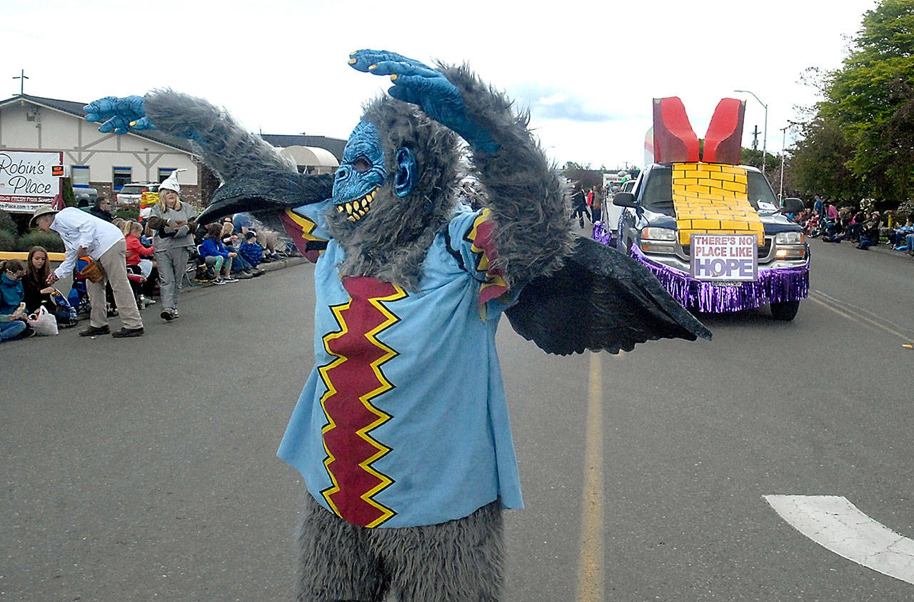 Carla Madison, dressed as a flying monkey character from “The Wizard of Oz” entertains parade-goers Saturday. (Keith Thorpe/Peninsula Daily News)