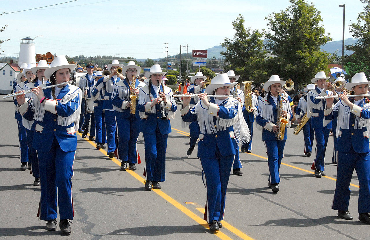 Members of the Chinacum High School marching band perform as they march down Washington Street during Saturday’s Irrigation Festival Grand Parade in Sequim. (Keith Thorpe/Peninsula Daily News)