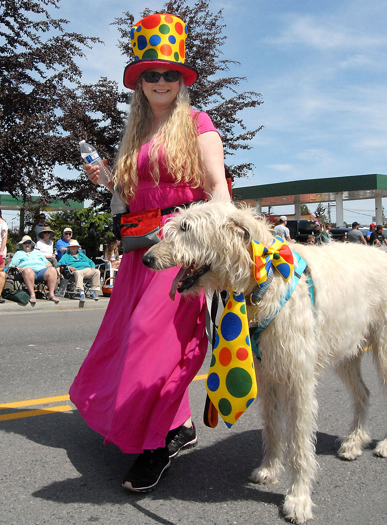 Rebekah Jordan and her dog, Lincoln, take their turn in Saturday’s Grand Parade. (Keith Thorpe/Peninsula Daily News)