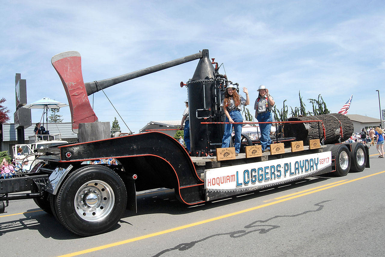 A float representing the Loggers Play Day in Hoquiam makes its way down the parade route. (Keith Thorpe/Peninsula Daily News)
