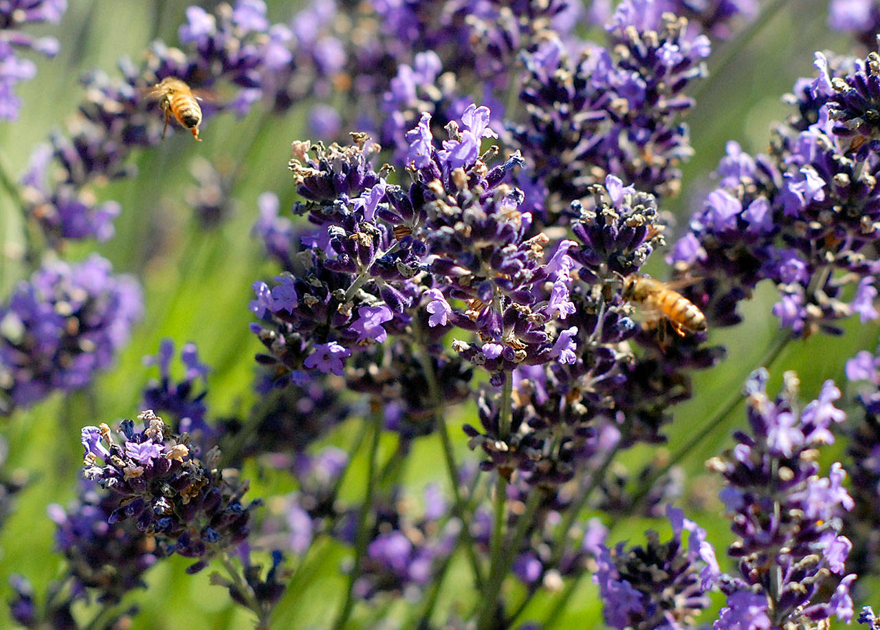 Bees buzz around lavender plants at Lost Mountain Lavender Farm on Saturday. (Keith Thorpe/Peninsula Daily News)