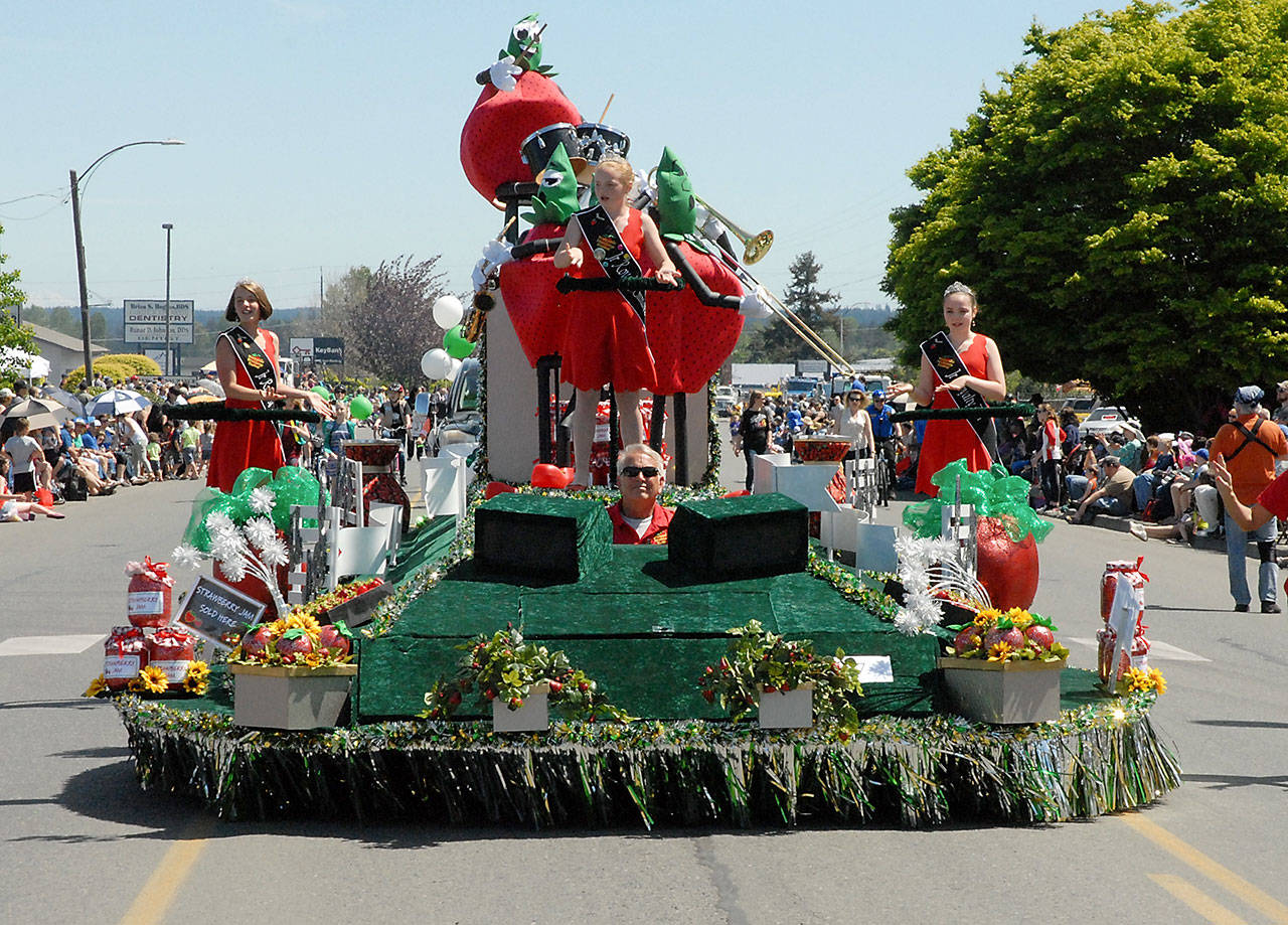 The Marysville Strawberry Festival float offered a fruity theme Saturday. (Keith Thorpe/Peninsula Daily News)
