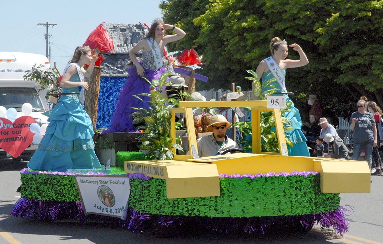 A float representing the McCleary Bear Festival rolls down the Irrigation Festival parade route. (Keith Thorpe/Peninsula Daily News)