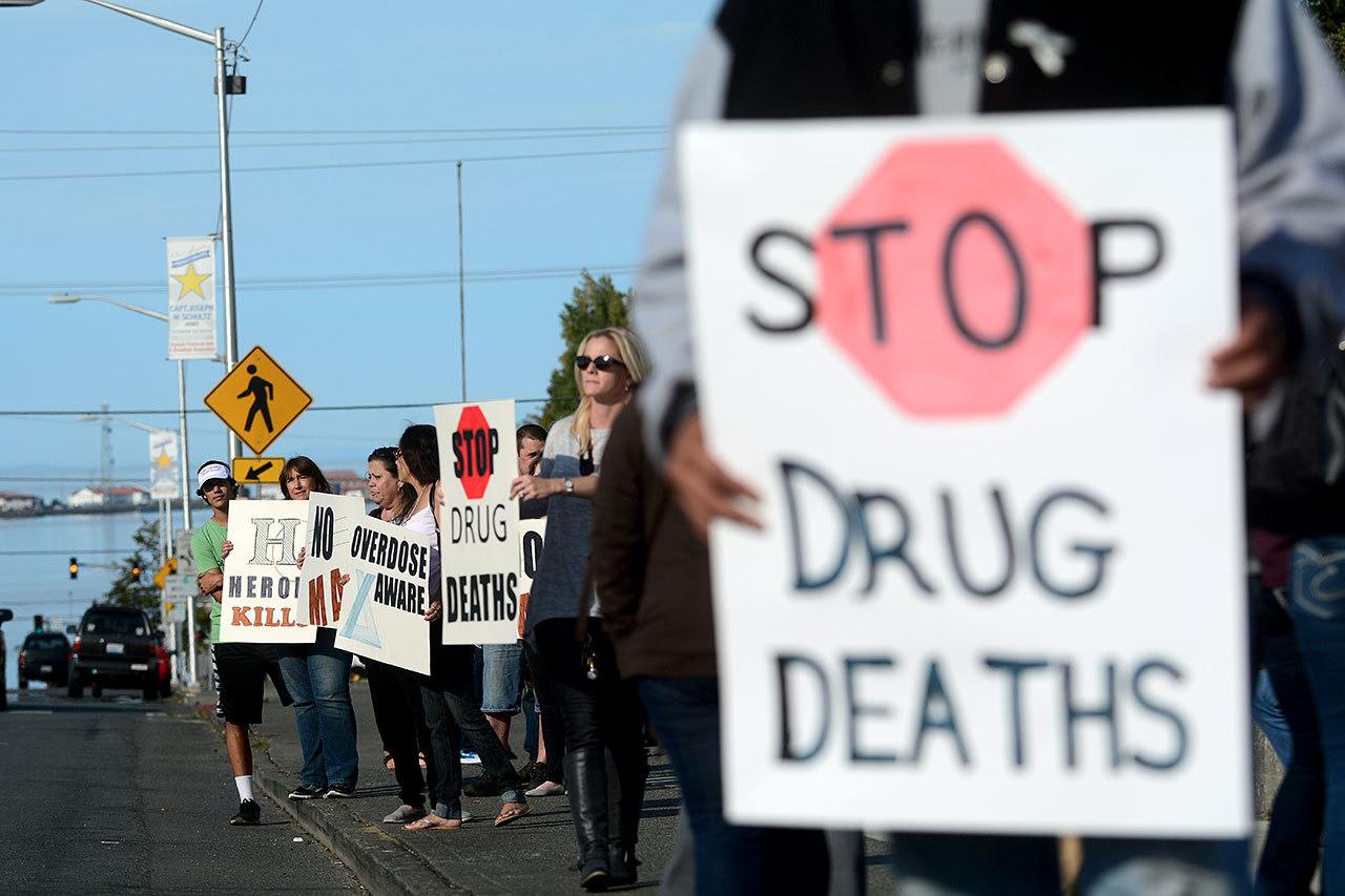 The rally Tuesday saw some 200 to 300 people gather on the Clallam County Courthouse steps and walk to City Pier to hear speakers including Zachary Oravetz, who recently lost his younger brother, Beau Silvas, to a heroin overdose.