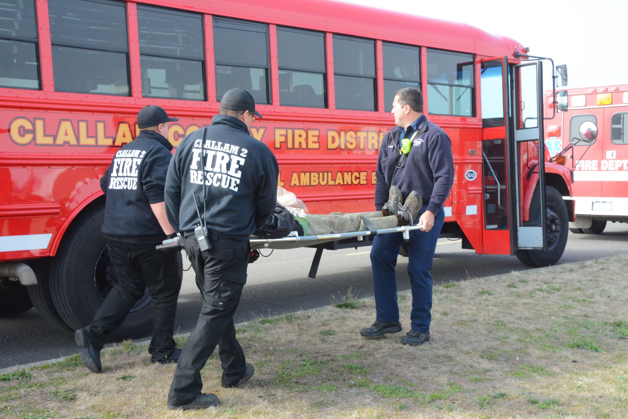 First responders examined them and transported them to Olympic Medical Center in Port Angeles, where the drill continued.