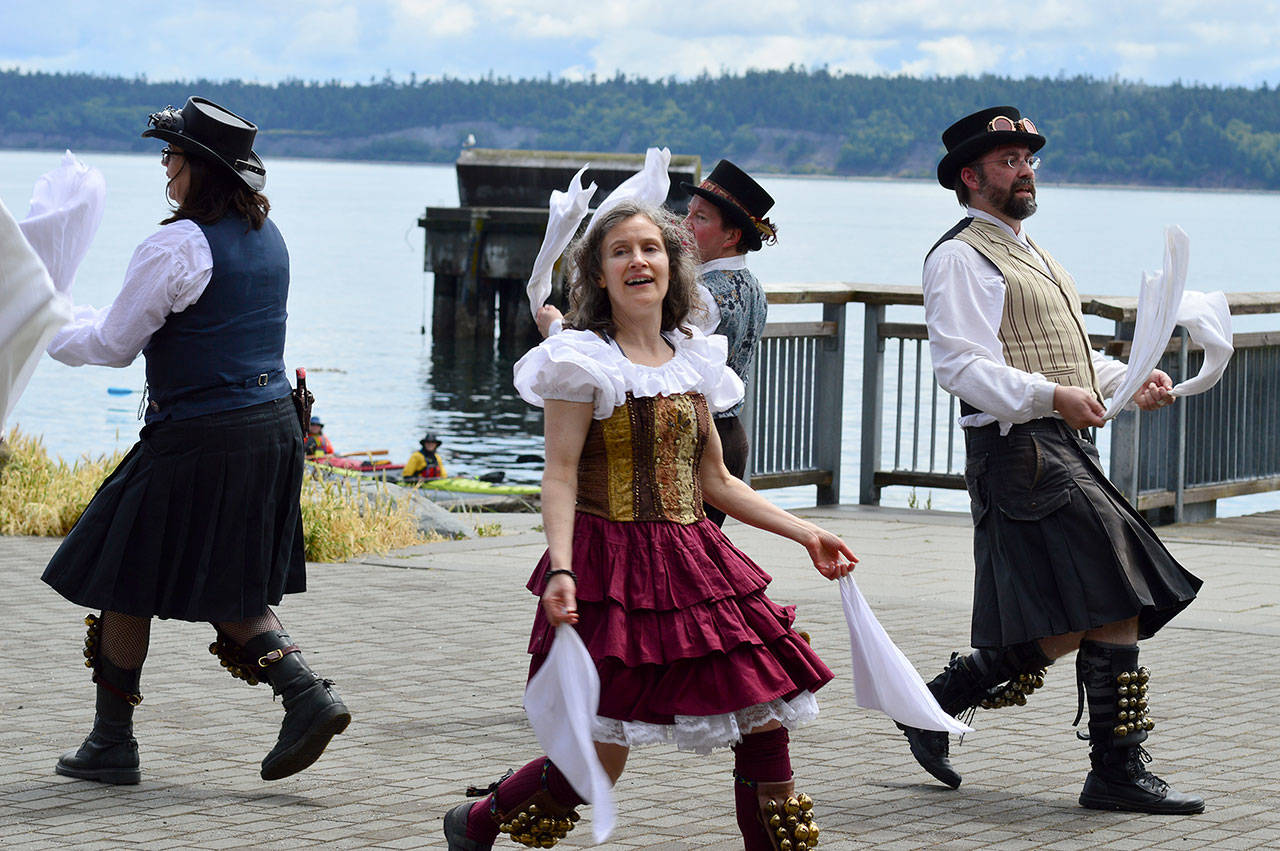 The Sound and Fury Morris Dancers from Seattle brought out the sunshine Saturday afternoon at the Steampunk Festival in Port Townsend. (Diane Urbani de la Paz/Peninsula Daily News)
