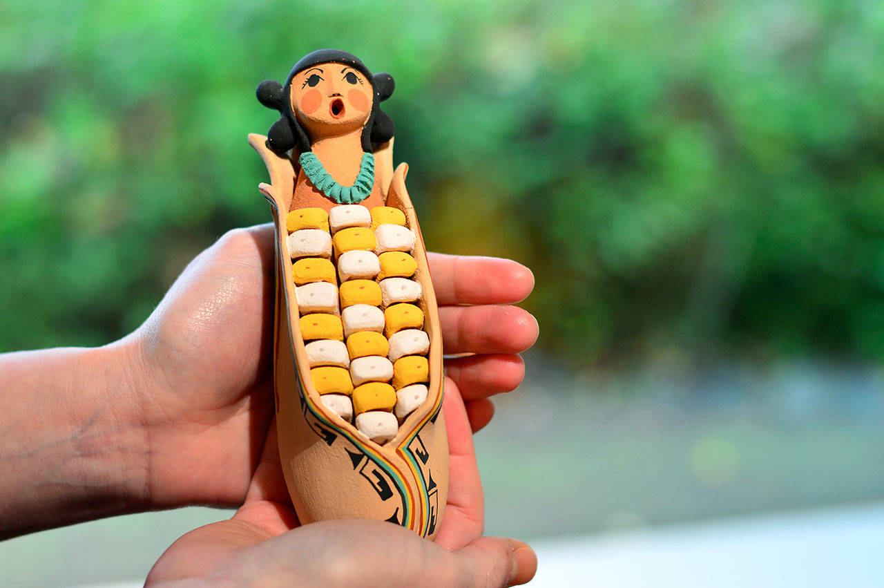 • “Coyote’s Winter Shawl,” an earthenware sculpture by Pueblo artist Snowflake Flower.