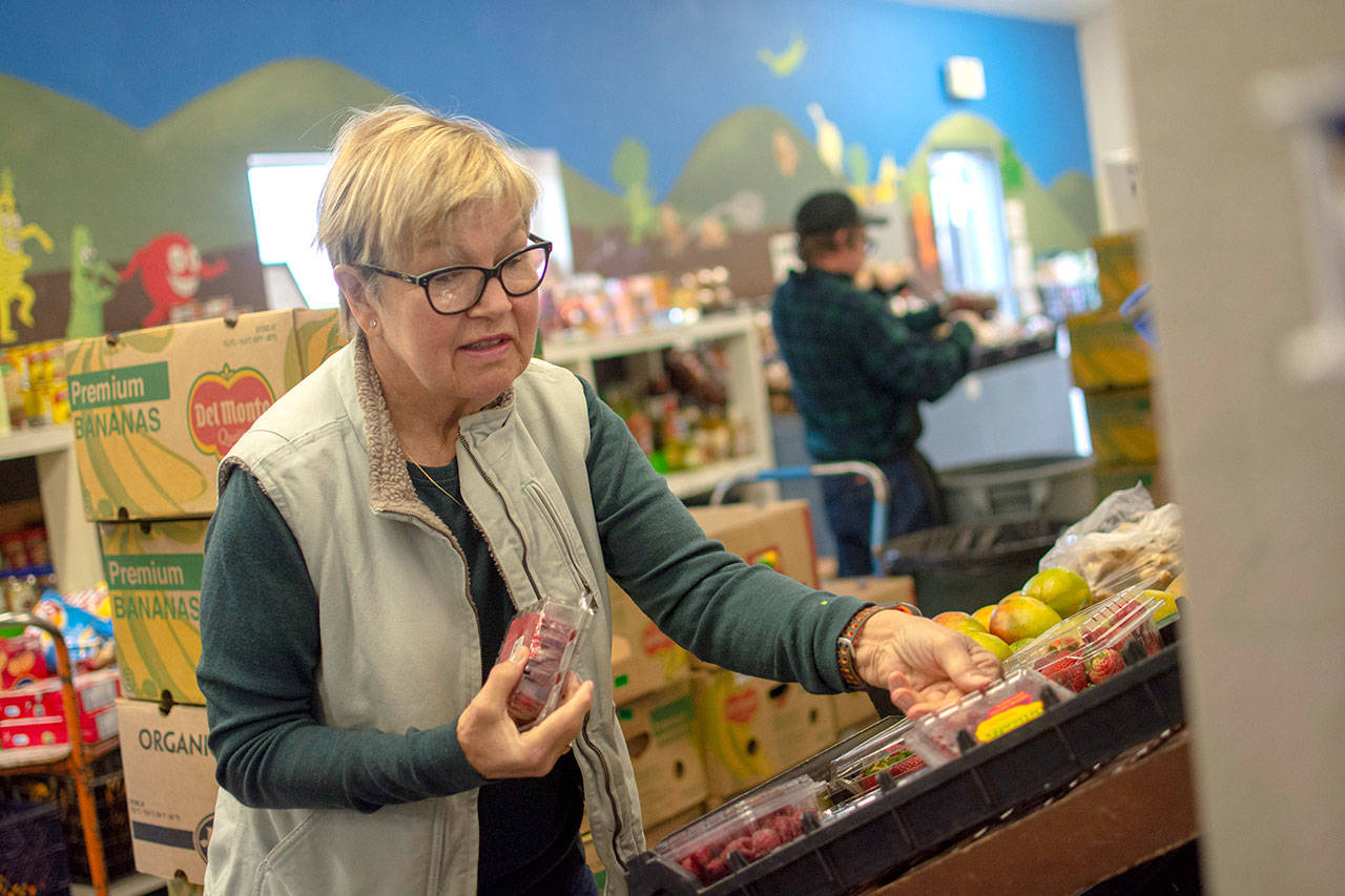 At checkout, clients’ groceries were bagged using cloth bags that were donated by Bags Go Green in Carlsborg.