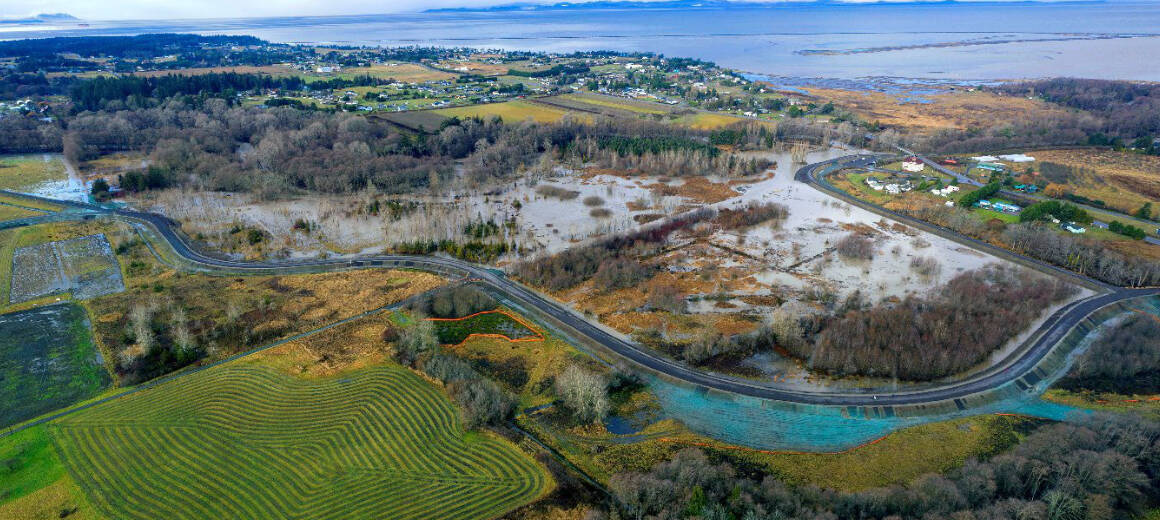 Completed earlier this year, the multi-agency Lower Dungeness River Floodplain Restoration Project relocated a portion of the levee system along the lower reaches of the Dungeness River. The project reconnected more than 175 acres of the river’s historic floodplain, which project leaders say result in reduced flood risk and expanded habitat for salmon and other fish and wildlife species.