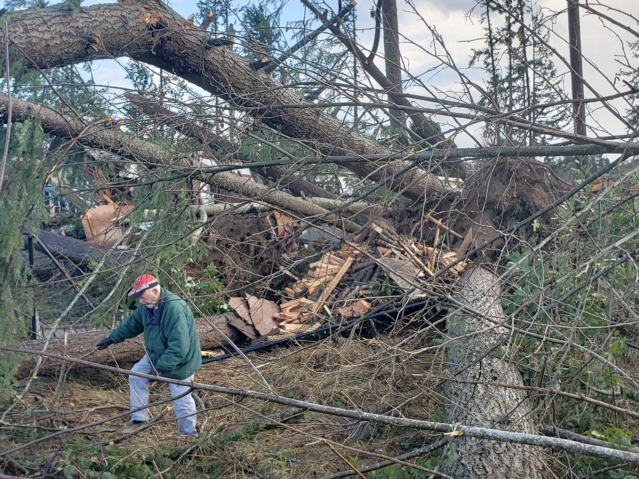 PORT ORCHARD — Curran Cain was cleaning the grease traps at Farmer George Meats on Bethel Avenue just before 2 p.m. Tuesday when he noticed the winds had picked up and were roaring outside.