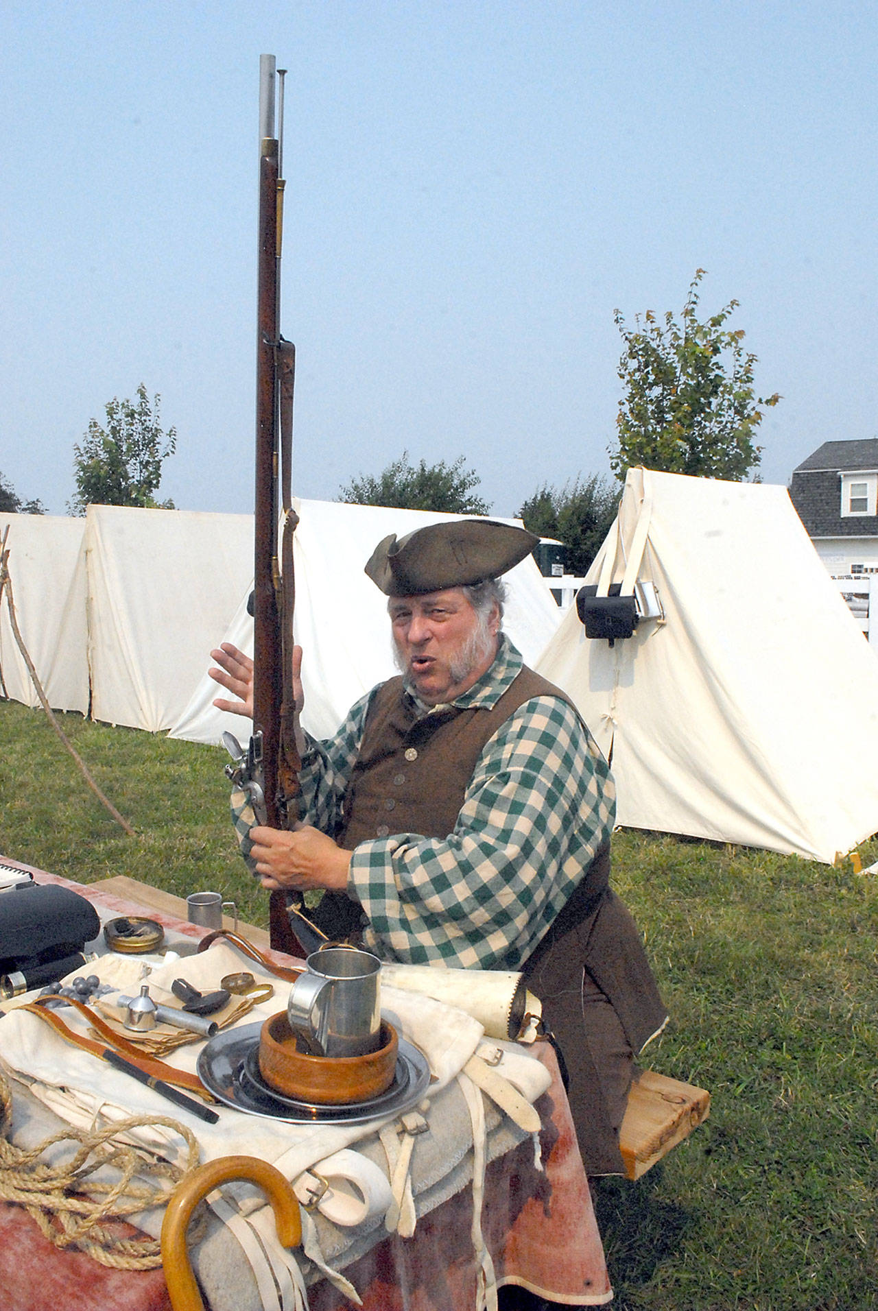 Terry Smith of Seattle explains the use of a musket during Saturday’s Northwest Colonial Festival at the George Washington Inn east of Port Angeles. The event featured displays, demonstrations and reenactments of life during the colonial era of the American Revolution.