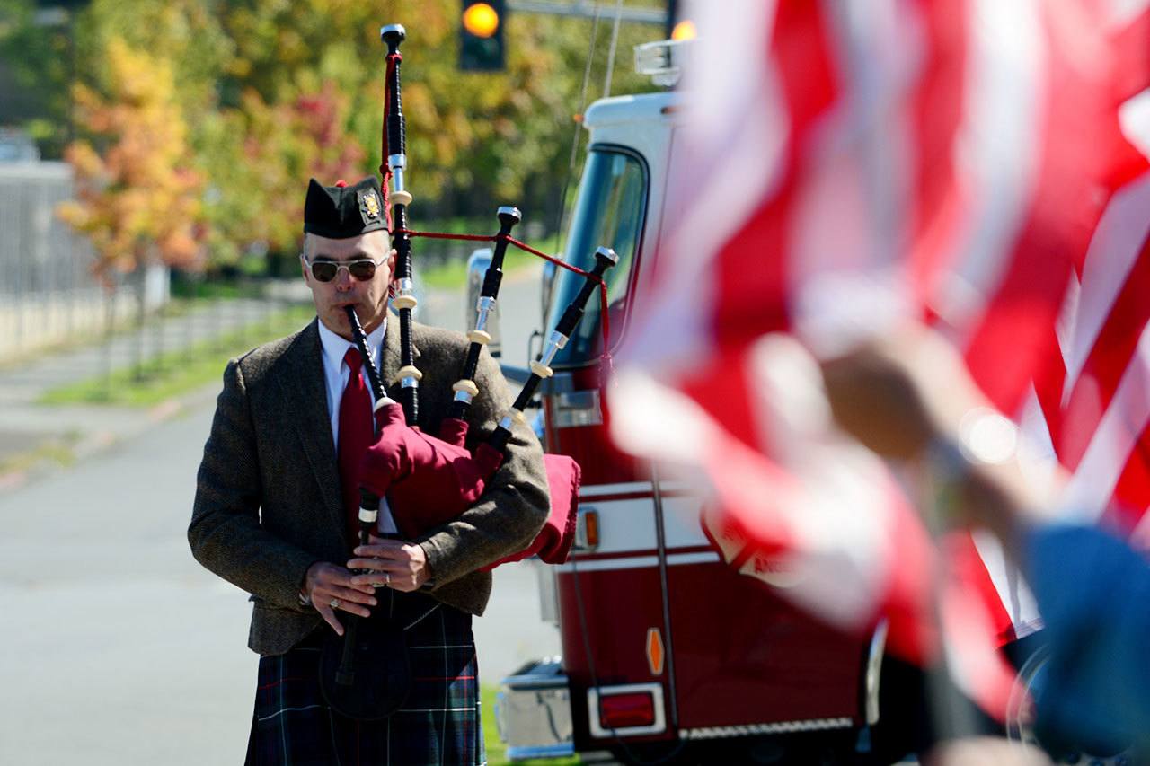 Ricky McKenzie, a retired Coast Guard Veteran, has played his highland bagpipes at the Port Angeles 9/11 memorial for the past three years.