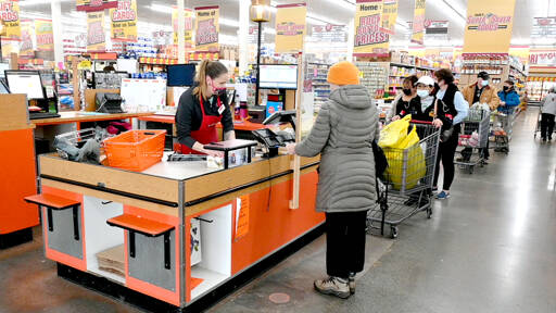 The discount grocery store at 114 E. Lauridsen Blvd. was flooded with shoppers seeking closing-sale bargains on top of regular bargains Tuesday.