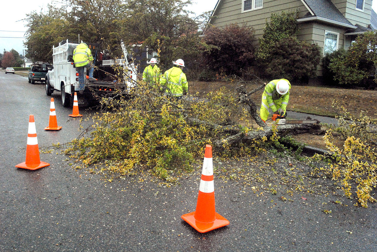“It’s the first shakeout when you get those first winds through here,” said Nicole Clark, communications manager for Clallam County Public Utility District, adding that “we’re a little more concerned about [today].”