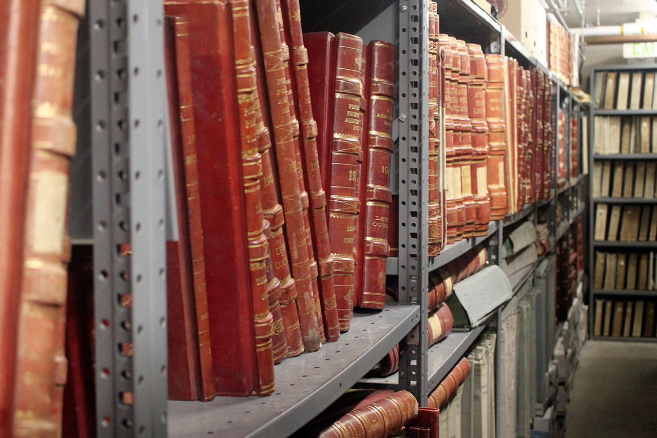 OLYMPIA — In the Washington State Archives building, records are tightly packed in shelves, file boxes and leather-bound books so large they look like they belong in a Hogwarts library.