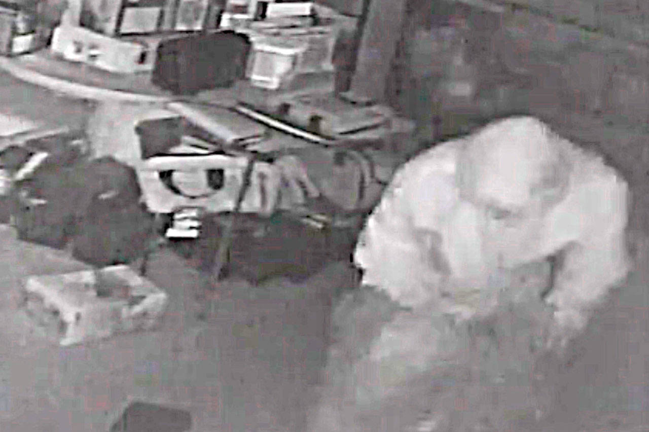 SEQUIM — The owner of FREDS Guns in Sequim has released security footage showing a frontloader driving through the front of the store before a man stuffs a duffel bag with about 30 guns.