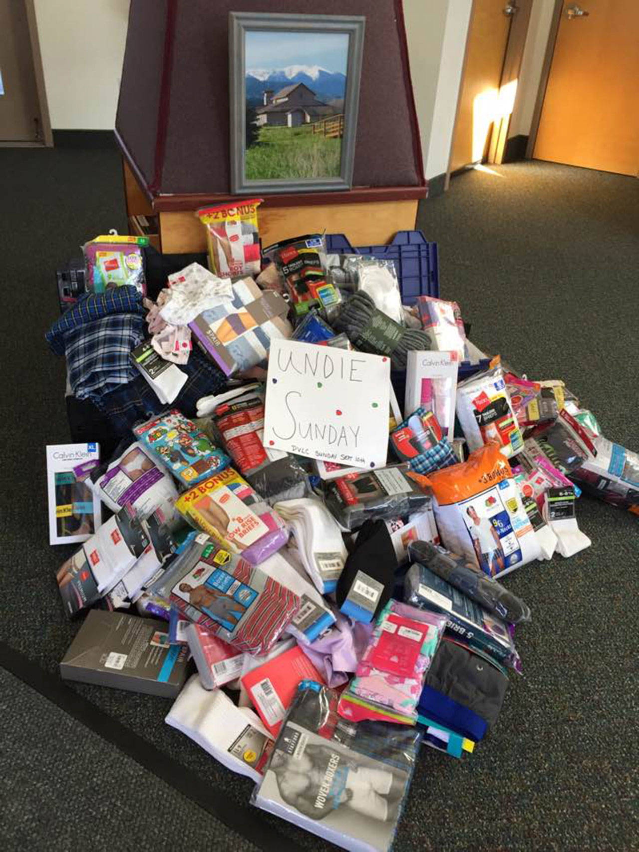 On Sunday, members of the church at 925 N. Sequim Ave., hosted Undie Sunday, asking for new packs of underwear for people of all ages to send to people affected by the hurricane.