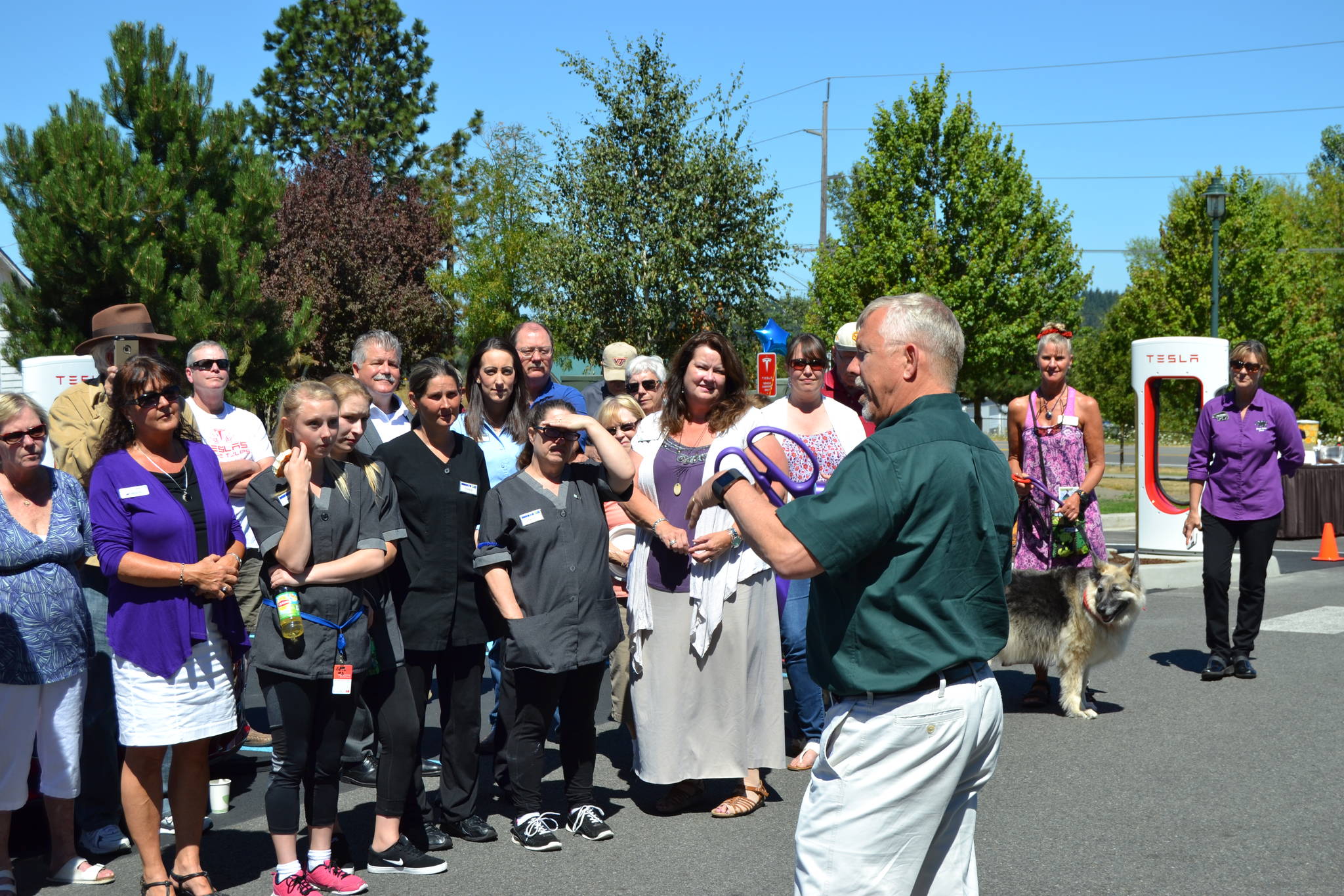 Brick Ayola of Port Angeles said at the ribbon-cutting that he has owned a Tesla for almost five years and drove his car from Chicago to move to the area.